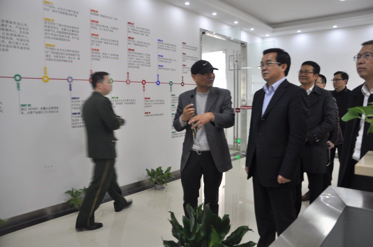 2018年39日,副省長高興夫赴龍灣調研小微企業(yè)園區(qū)建設運營管理工作時,實地走訪我公司。副市長陳建明,區(qū)委副書記、區(qū)長周一富隨同調研。副省長高興夫等領導在我公司董事長、總工程師李文霖的陪同下,參觀了我公司的機加工車間、組裝調試車間、榮譽展示廳、樣品展示廳??疾熘?,李文霖董事長向考察組領導詳細匯報溫州方圓儀器有限公司發(fā)展歷史、企業(yè)規(guī)模、管理經驗、技術創(chuàng)新、發(fā)展規(guī)劃等。調研組領導對我公司取得的成績給予充分肯定,并囑咐我們要堅持走自主創(chuàng)新的道路,加快新產品開發(fā)力度,提高市場影響力。
